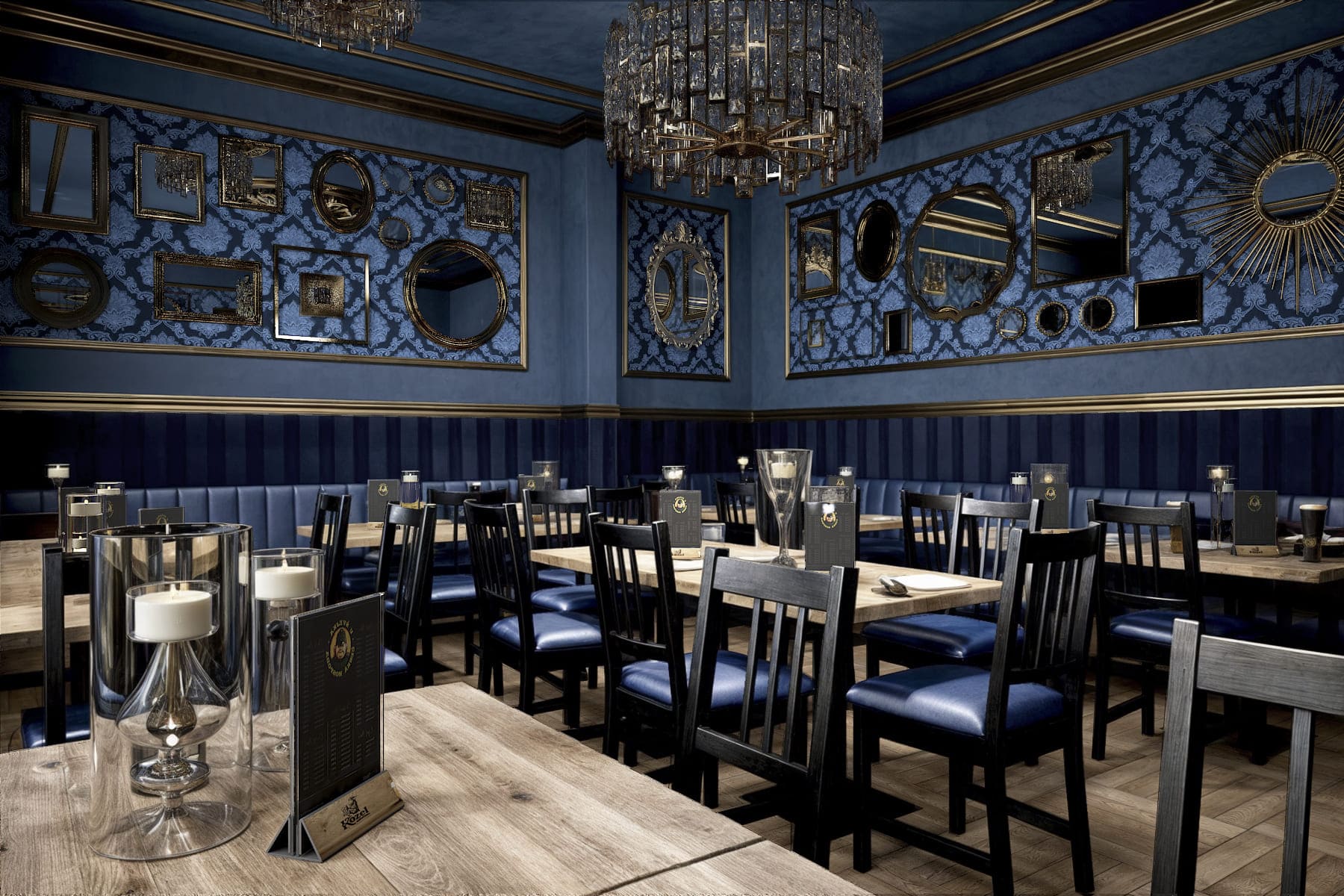 Projekt pałacowej części restauracji Szwejk w Zielonej Górze to próba przeniesienia ducha minionych epok do współczesności. Dbałość o każdy szczegół, od sztukaterii po dobór tkanin, pozwoliła stworzyć wnętrze, które jest jednocześnie luksusowe i przytulne. To ukłon w stronę historii, który sprawia, że goście mogą poczuć się jak w pałacowych wnętrzach sprzed wieków, ciesząc się zarazem komfortem i wygodą współczesności.