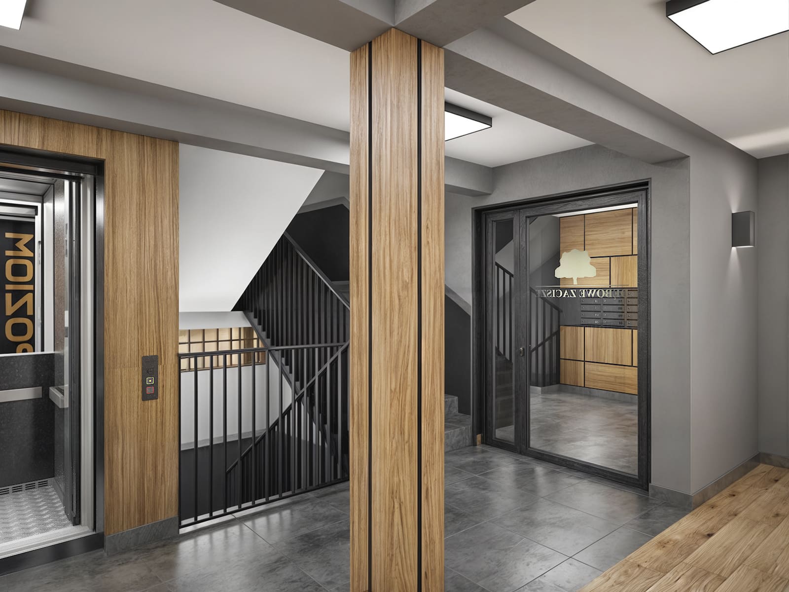 Nowoczesne klatki schodowe powinny być przedłużeniem mieszkań, a nie tylko zimnym korytarzem. Projekt dla osiedla Zacisze w Zielonej Górze pokazuje, że odpowiednie materiały i przemyślane rozwiązania mogą całkowicie odmienić postrzeganie tej przestrzeni.