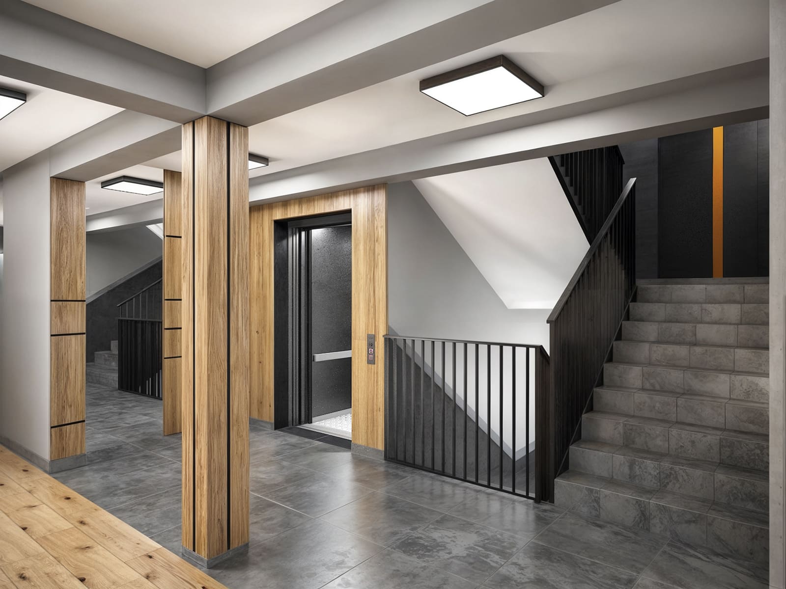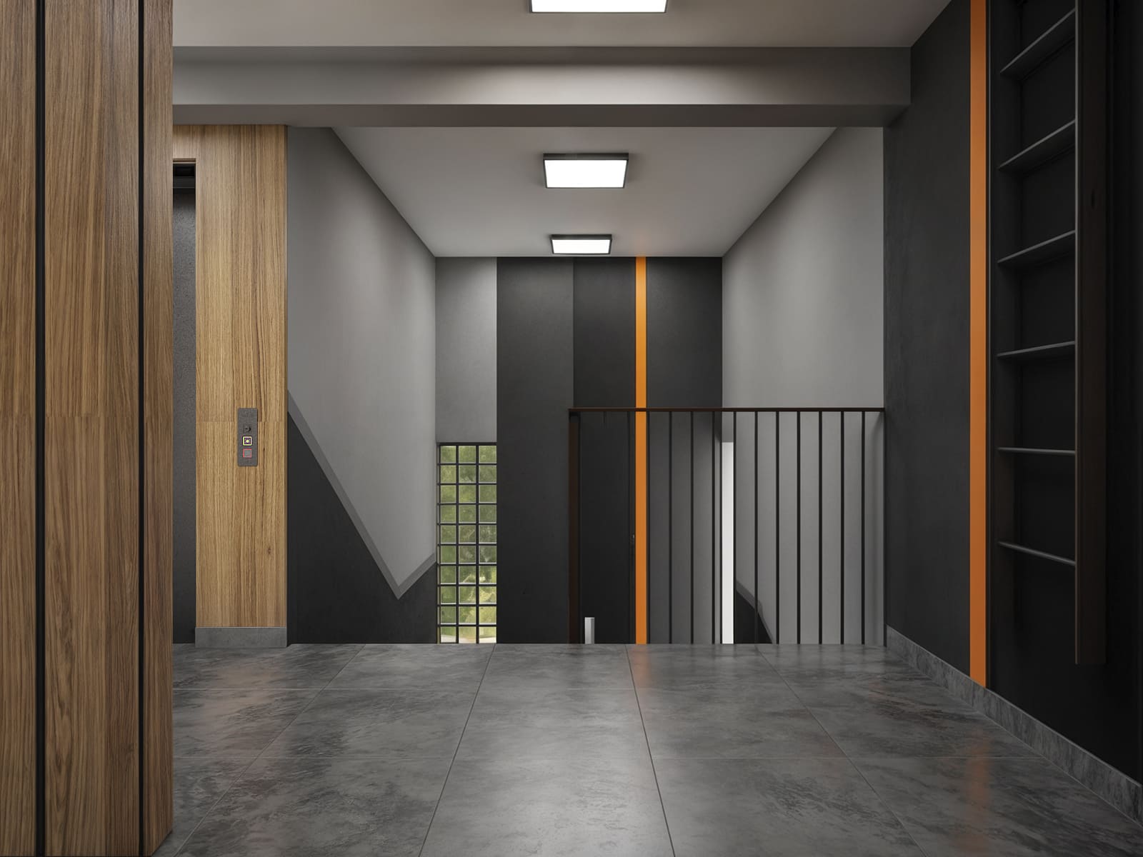 Klatki schodowe w budynkach mieszkalnych od lat pozostawały w cieniu, traktowane jako przestrzeń czysto użytkowa, pozbawiona wizualnej spójności z wnętrzami mieszkań. Jednak świadomość ich roli w codziennym funkcjonowaniu mieszkańców rośnie. Projektując klatki schodowe na osiedlu Dębowe Zacisze w Zielonej Górze dla firmy Perbud, postawiliśmy na estetykę, trwałość oraz odwołanie do architektury budynku.