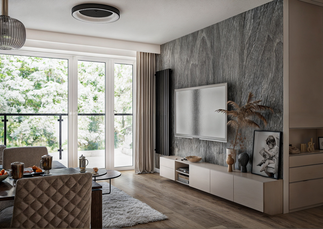 Jest doskonałą bazą do stworzenia przytulnej przestrzeni do odpoczynku. Jego neutralność pozwala na łączenie z drewnem i miękkimi tkaninami, tworzy klimat sprzyjający relaksowi.