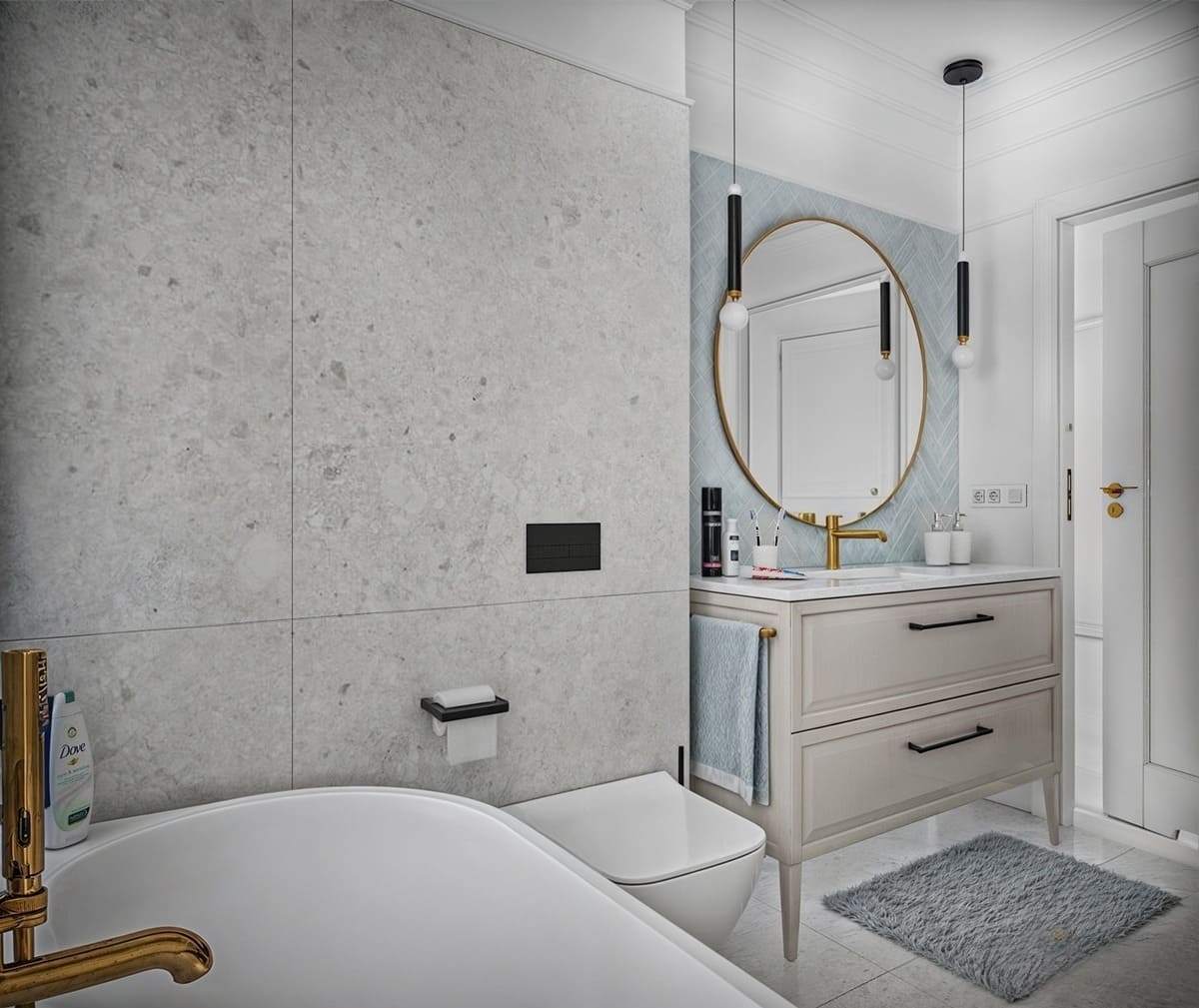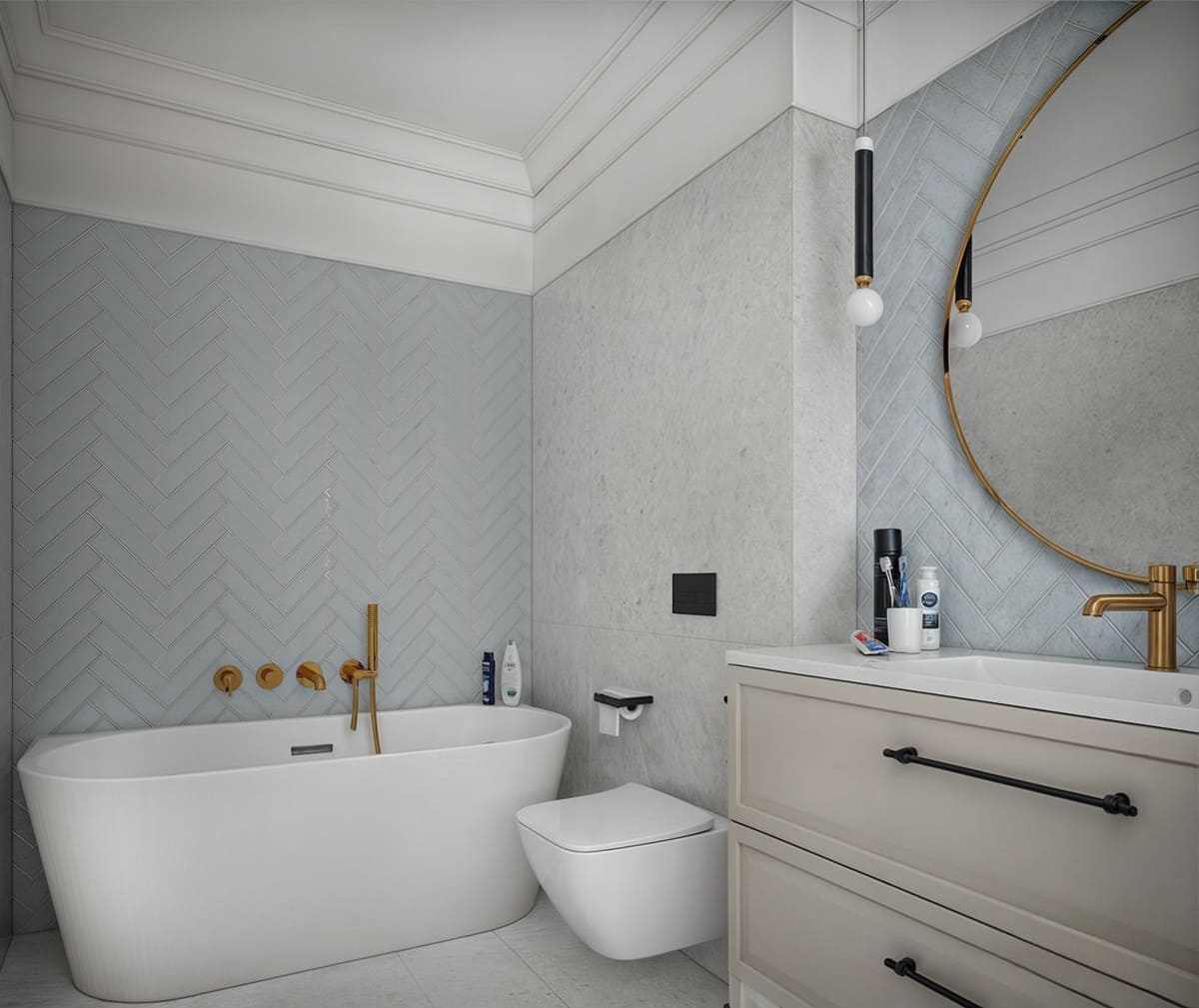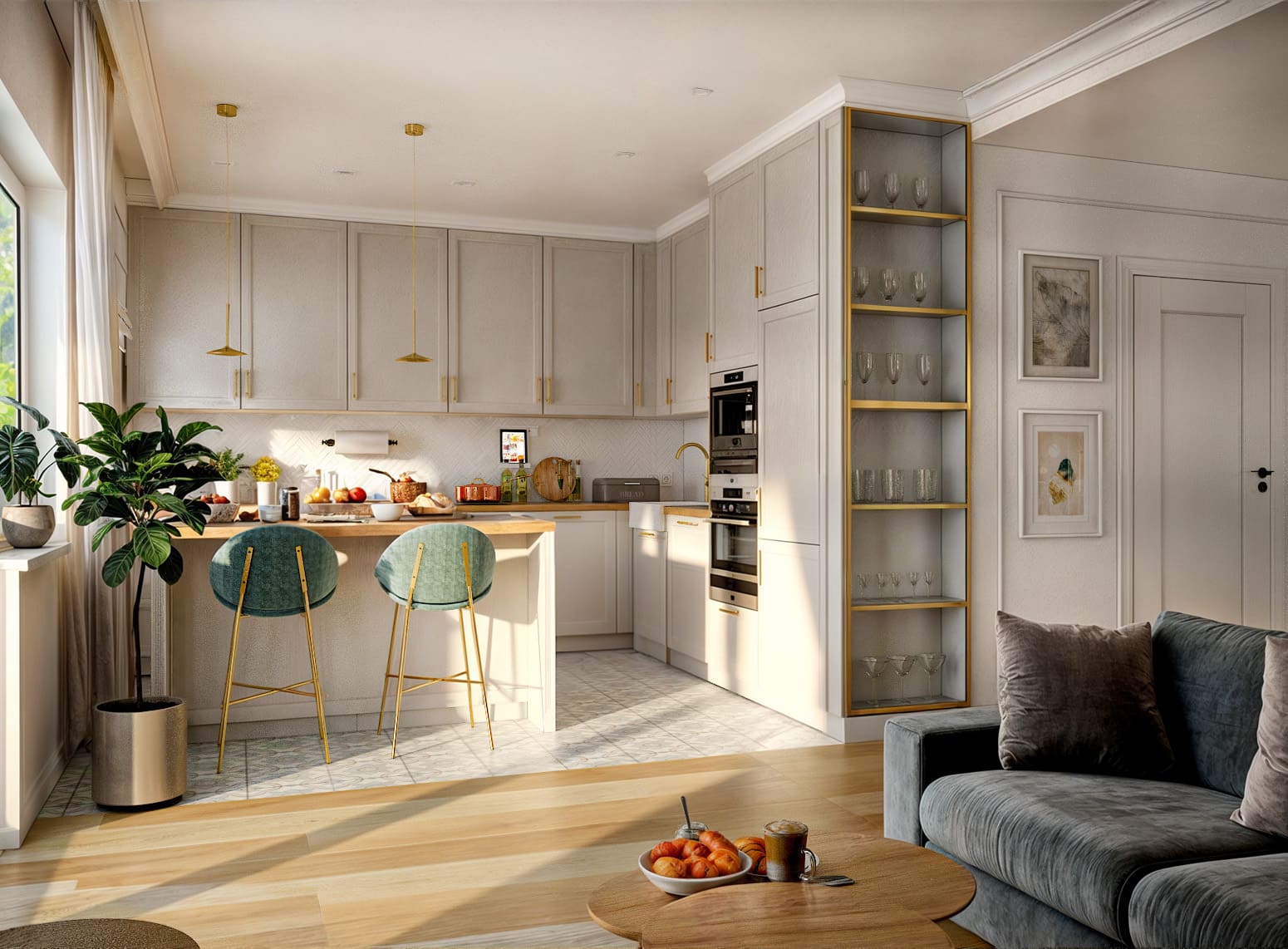 Centralnym punktem mieszkania stała się przestrzeń łącząca salon, jadalnię i kuchnię. Taki układ sprzyja integracji — pozwala na rozmowy podczas przygotowywania posiłków, wspólne śniadania czy leniwe popołudnia przy herbacie. Naturalne materiały, takie jak drewno dębowe, nadają wnętrzu ciepła, a miękkie tkaniny i dodatki w stonowanych barwach tworzą atmosferę spokoju. Przemyślane oświetlenie oraz wygodne meble zapraszają do odpoczynku i wspólnych rozmów.